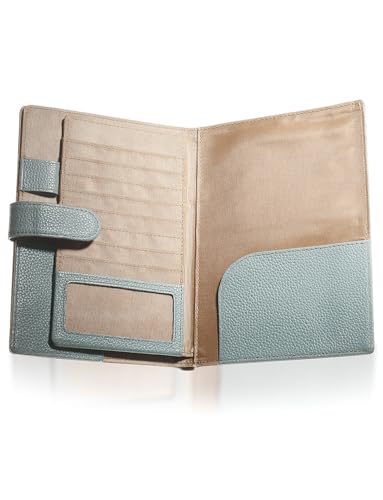 [BLUE SINCERE] お薬手帳 ケース 本革 大容量 ペンホルダー付 母子手帳 カバー まとめて収納 通院 財布 レディース メンズ ギフトボックス付き / KT1 (スカイブルー, B5(左利き用))